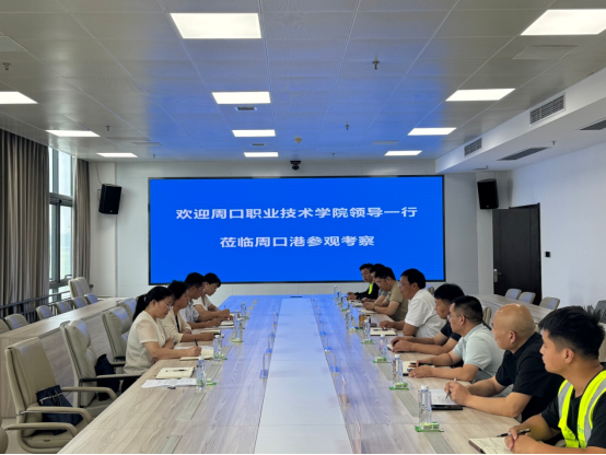 8月19日上午,副董事长李秀萍、公司党总支书记王晖、经理刘胜杰以及相关专业教师赴周口临港开发区中心港码头考察调研并召开座谈会。周口临港开发区二级调研员杜广贤,周口临港开发区码头运营办负责人段传奇及周口港口建设发展集团有限公司等7家企业负责人一同参加本次座谈会。