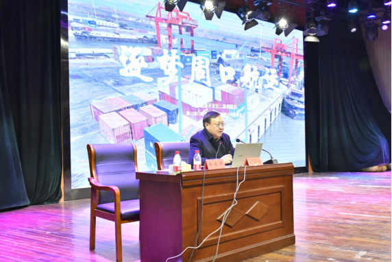 杜广贤董事长以周口航运的实践与探索为主题展开分享。首先,深情回顾了周口航运的悠久历史和辉煌历程,详细介绍了周口航运的发展现状,以及在通江达海、内连外通,推动地方经济发展中的重要作用。其次,着重强调了随着国家发展战略和省市布局规划的持续推进,周口航运必将迎来前所未有的发展机遇。最后,还分享了自己在航运领域的经验和心得,鼓励在场的师生们要勇于逐梦,敢于创新,为航运事业的发展贡献自己的力量。