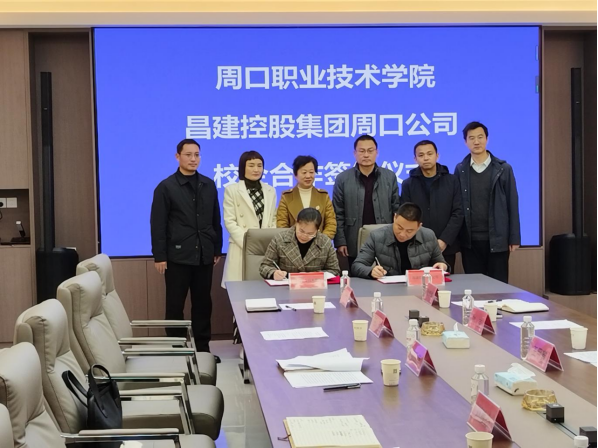 刘胜杰经理和昌建控股周口公司常务副总经理刘克代表双方签订校企合作协议。