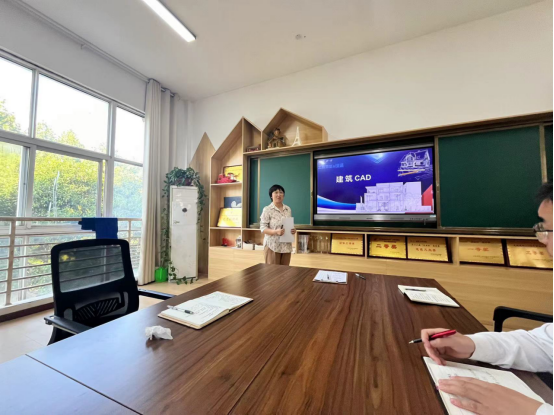 一直在准备比赛的郜颖老师给大家展示了《建筑CAD》课程的实施报告,郜老师从课程的重构、学情分析、教学设计、教学策略、教学的特色、反思改进等方面给大家做了全面的分享。