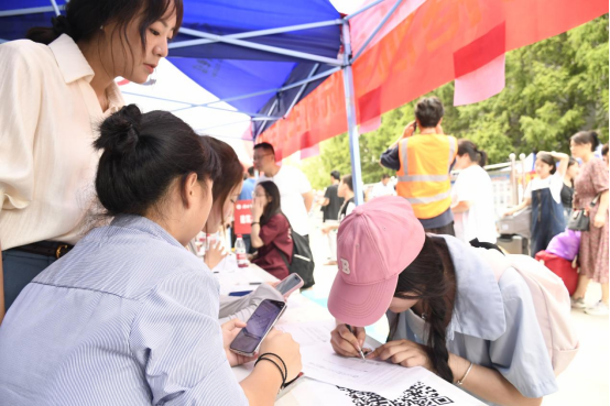 活动当天,在公司党总支的精心组织下,一支由青年教师党员和入党积极分子组成的志愿服务队早早地集合完毕,他们身着统一的志愿服务服装,胸前佩戴着鲜红的党徽,成为了迎新现场一道亮丽的风景线。志愿服务队成员们分工明确,有的负责接待新生及家长,解答疑问;有的协助搬运行李,引导新生办理报到手续;还有的则担任校园导览员,带领新生熟悉校园环境。他们的身影忙碌而有序,用实际行动诠释了“全心全意为人民服务”的宗旨。