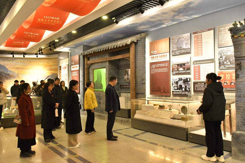 在讲解员的引导下,师生党员依次参观了纪念馆主题展区。通过珍贵文物、历史照片和场景复原模型,师生党员深入了解吉鸿昌将军从旧军官到共产主义战士的转变历程:1932年加入中国共产党后,他毁家纾难组建察哈尔抗日同盟军,率部收复多伦等失地;被捕后写下恨不抗日死,留作今日羞的绝命诗,以39岁生命诠释国破尚如此,我何惜此头的赤子情怀。